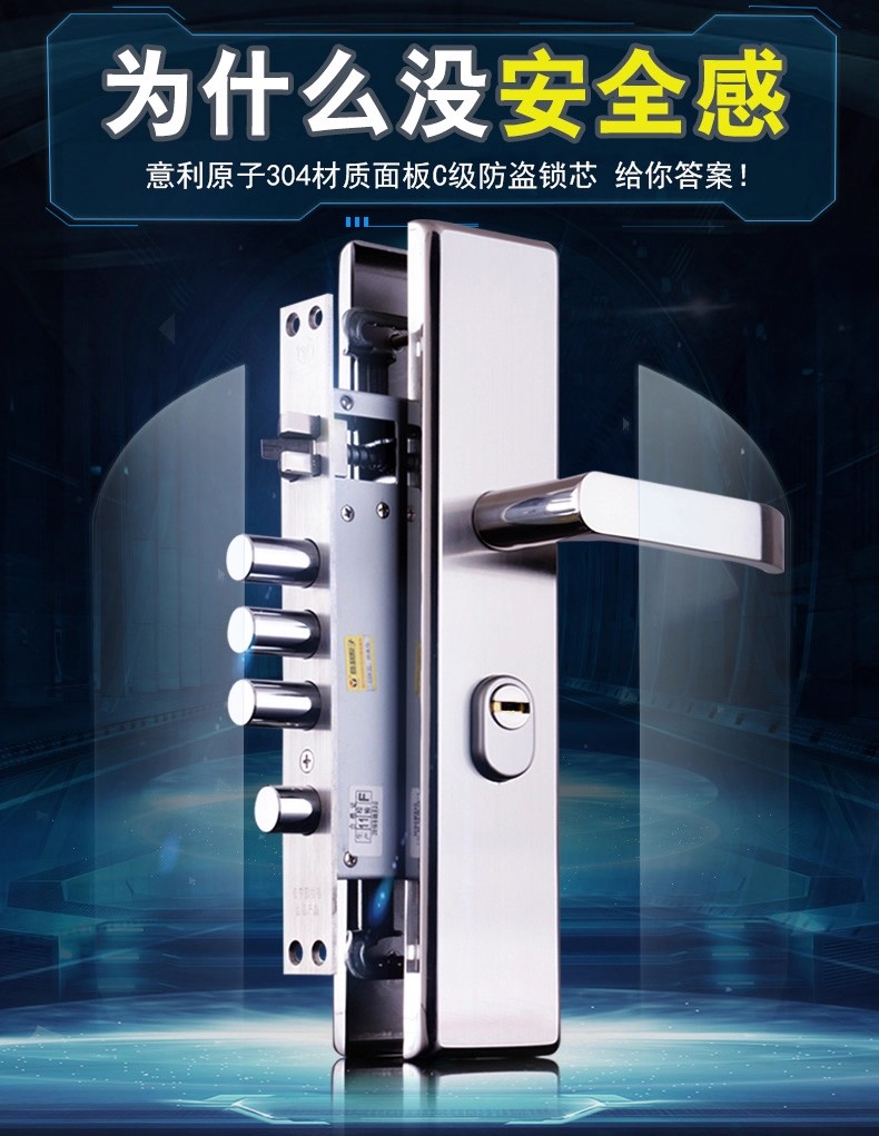 龙广镇门锁家用不锈钢防盗门锁套装
